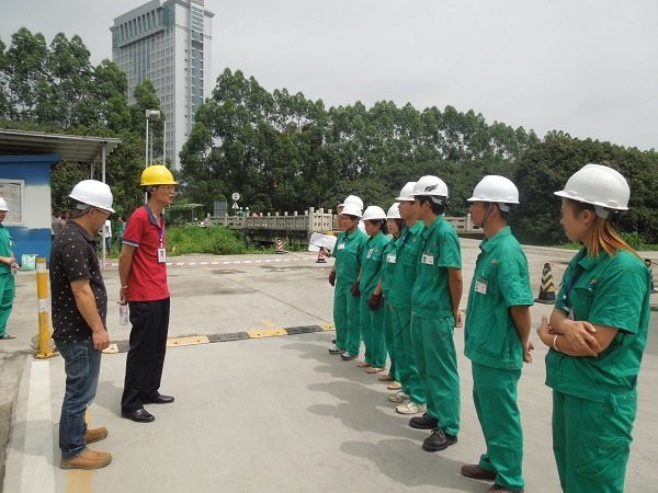 事故起因是荔園加氣站7#加氣槍加氣機內有異常的響聲,且燃氣報警器響起,技術人員初步判斷為加氣機內部發生大泄漏。接到通知后,銷售部負責人林啟航立即將事故概況向上級相關部門匯報,協調維修組人員前來協助,并迅速啟動應急處理方案。演練中,各應急處理小組緊張且有秩序地開展應急處理工作:停止一切生產、切斷電源,封鎖進出路口、疏散工作人員及無關人員;搶險人員佩戴安全設備進入現場,關閉出口閥,打開放空閥排空壓力,并檢測周邊天然氣濃度;之后,維修組進入現場修理,經過多方搶修,該加氣機修復完畢,其它機臺也恢復正常運行。